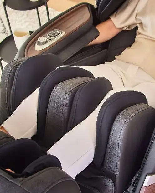 Grâce à la tablette intuitive, vous pouvez régler la longueur du module "mollets" afin qu’il s’étende jusqu’à vos genoux, quelle que soit votre taille. Une fois bien ajusté, le système d'air se gonfle et se dégonfle de manière rythmée, créant une sensation de massage compressif. Ce mécanisme stimule la circulation sanguine, réduit les sensations de jambes lourdes et soulage les articulations, particulièrement après une station debout prolongée ou une activité physique intense.